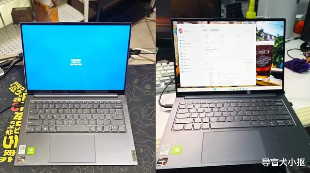 打开笔记本电脑,YOGA14S的屏幕与键盘区毫无违和感,经典样式设计。屏幕是14英寸的窄边框,单玻璃全贴合工艺,观感比雾面屏好很多,主要是显示更通透。YOGA14S的屏幕分辨率是2800*1800,高分屏的效果比之传统1080p效果好很多,精度高、显示清晰锐利。打开同样的照片和文档,比较1080p电脑屏幕,YOGA14S的显示明显更加精致,文字边缘放大也很锐利。在网页界面,会觉得图标和文本变得更加明朗,观感很好。